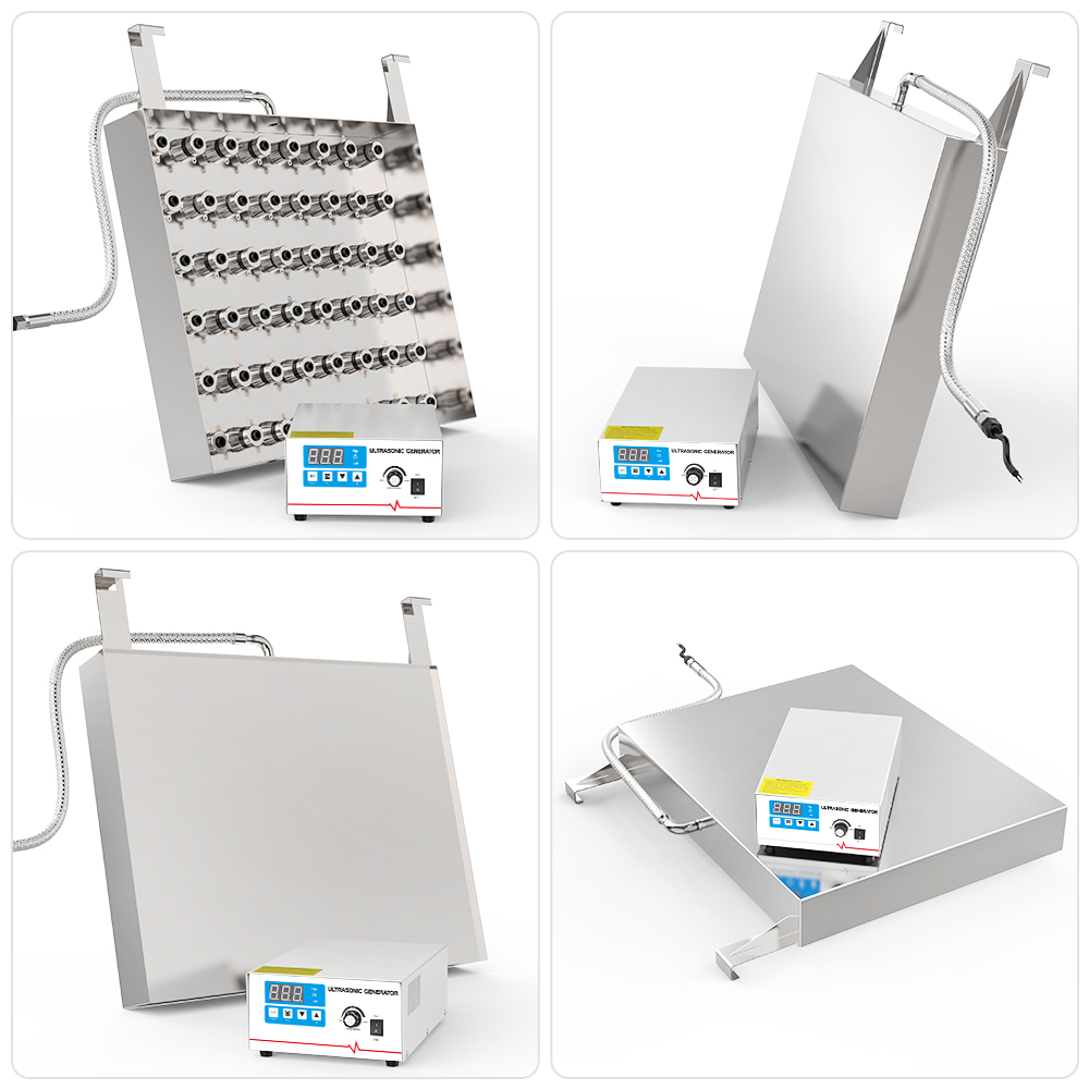 The immersible ultrasonic board is high power portable ultrasonic cleaner packages. It is with 2400w ultrasonic power and different frequency 28kHz/40kHz/68kHz ect available. The immersible ultrasonic panel is suitable for the projects which already with tank or clean huge products, need to use a pool or tank to fill water, and install the different quantity of ultrasonic cleaner packages. The ultrasonic cleaner packages is different size and different power, all are made as per your projects.